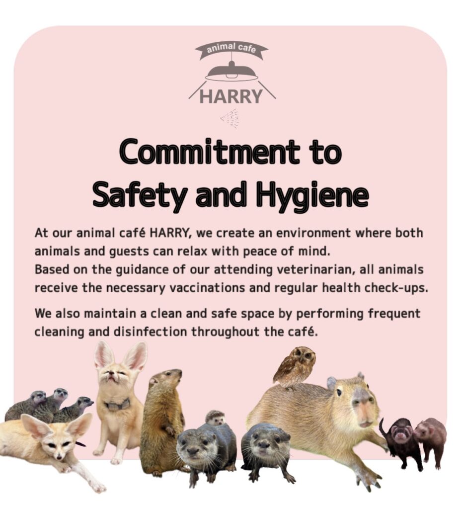 To make sure both our otters and our guests can enjoy their time together in a safe environment, we conduct routine health screenings for all our otters here at the Harajuku Terrace.