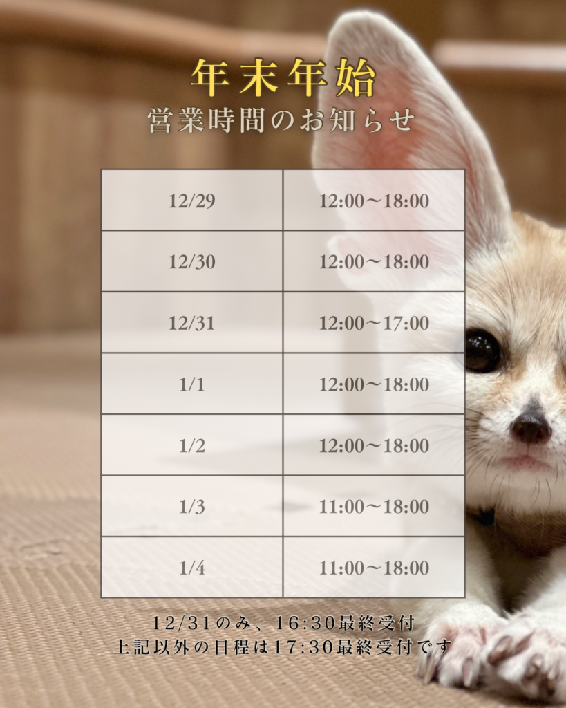 年末年始の営業時間につきまして、下記の通りご案内申し上げます。